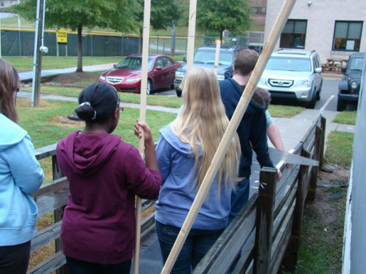 Above is me and my friends getting ready to cut the wood for our frames and nailed them together. We backed our frames with cardboard and began painting them with whatever color we wanted. finally we used our stencil and spray-panited them onto our frames. Here I am spray-painting...